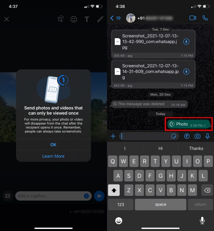 Snapchat dan Instagram memiliki foto dan video yang hanya bisa sekali lihat dalam aplikasi mereka, dan WhatsApp juga telah menyematkan fitur yang sama pada aplikasi mereka: WhatsApp View Once.