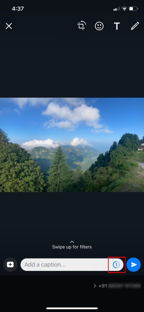 • Selanjutnya, pilih media (foto atau video) dan ketuk lingkaran kecil dengan tulisan ‘1’ di kotak dialog untuk membagikan foto atau video tersebut dengan fitur WhatsApp View Once. Jadi, media akan hilang secara otomatis setelah penerima membukanya sekali.