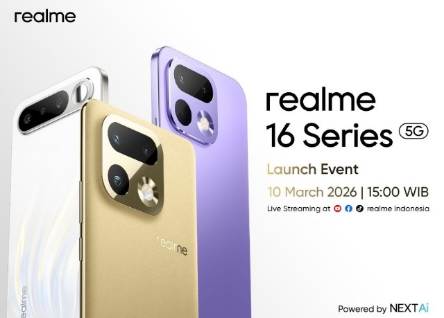 Launch event realme 16 Series 5G akan berlangsung 10 Maret 2026 pukul 15:00 WIB, disiarkan langsung melalui: