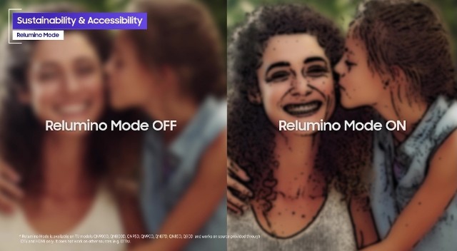 Selain itu, TV Samsung juga dilengkapi dengan Relumino Mode, yang membantu meningkatkan kontras dan kecerahan layar bagi pengguna yang kesulitan melihat detail pada gambar.