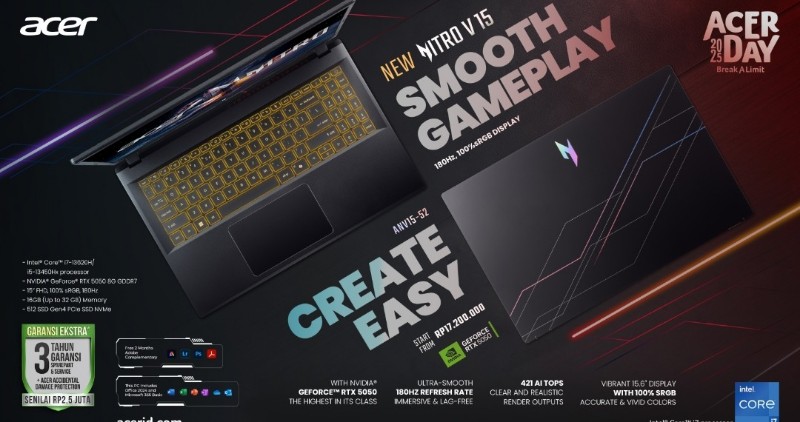 Dengan tagline “Smooth Gameplay, Create Easy.â€, Nitro V15 menegaskan komitmen Acer dalam menghadirkan pengalaman gaming dan produktivitas kelas atas bagi semua kalangan.