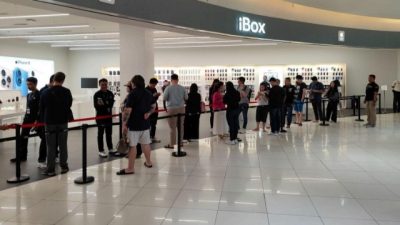 Sejak dini hari, pelanggan tampak memadati gerai iBox di berbagai kota, bahkan sebelum pusat perbelanjaan buka.