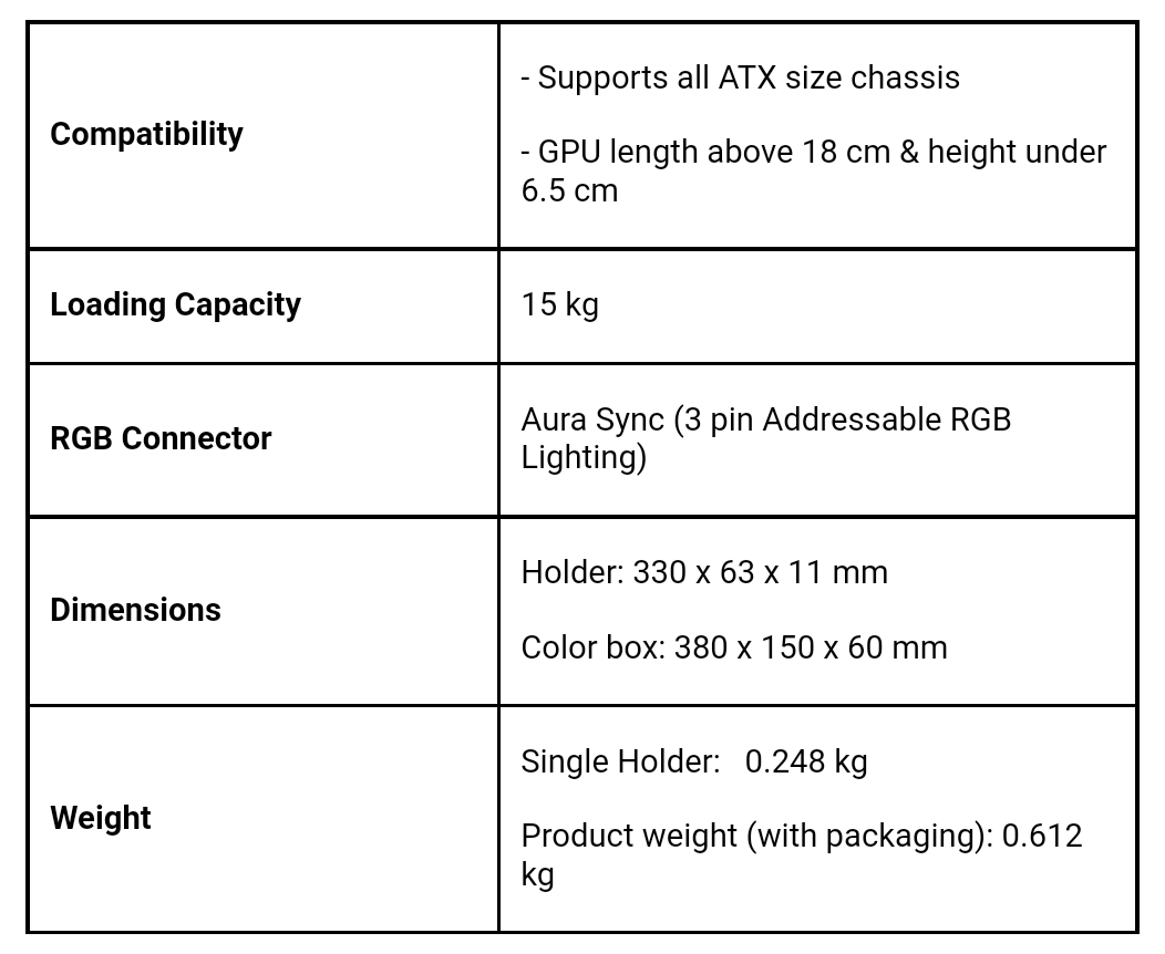 Spesifikasi ASUS ROG Wingwall Graphics Card Holder