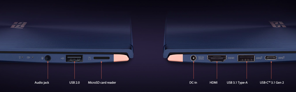 Sebagai tambahan, port HDMI, combo audio jack, dan pembaca kartu MicroSD ikut dihadirkan di jajaran laptop ZenBook terbaru ini.