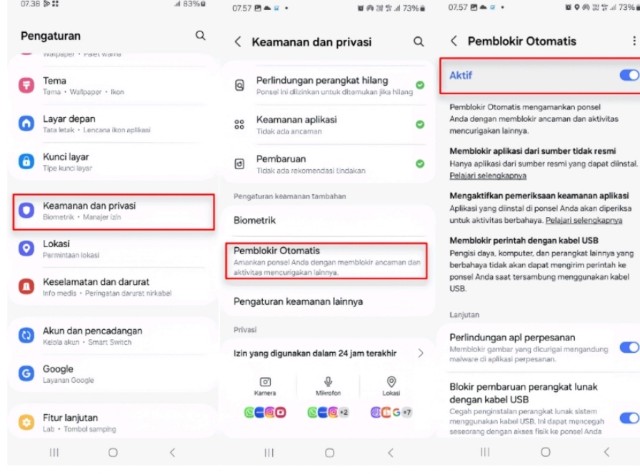 - Cara mengaktifkan: Pergi ke Pengaturan > Keamanan dan Privasi > Pemblokir Otomatis.