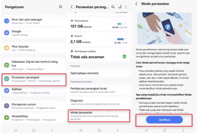 - Cara mengaktifkan: Pergi ke Pengaturan > Perawatan Perangkat > Mode Perawatan.