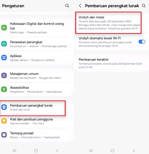 - Cara mengaktifkan: Pengaturan > Pembaruan Perangkat Lunak > Unduh dan Instal.