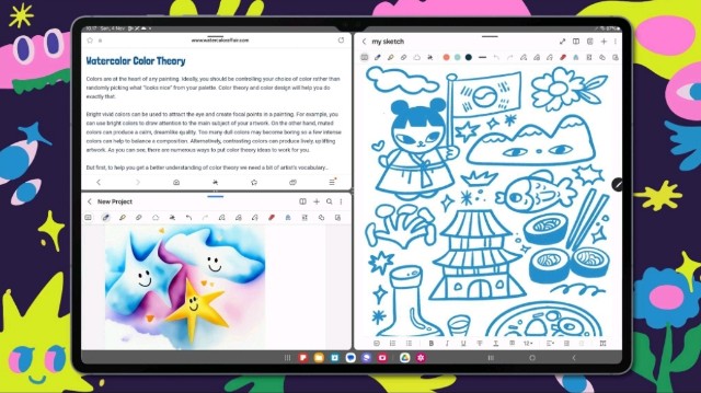 Bagi profesional kreatif, Galaxy Tab S10 Series menyediakan fitur Sketch to Image untuk menyempurnakan sketsa sederhana menjadi gambar utuh. Pengguna dapat memilih gaya gambar seperti Watercolor, Sketch, atau Pop Art. Cara menggunakannya: