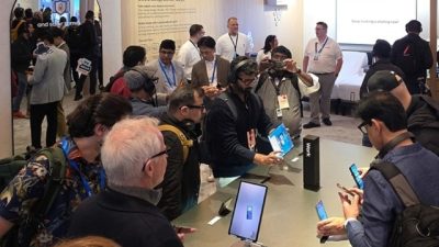 Begitu memasuki area pameran, pengunjung langsung disambut dengan tampilan futuristik Galaxy Z TriFold yang dipamerkan melalui layar Transparent Micro LED, mencerminkan masa depan perangkat pintar Samsung yang terintegrasi dengan AI.