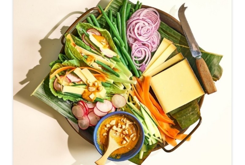 Tekstur padat Comté sangat cocok untuk hidangan satu gigitan seperti ini, berpadu dengan segarnya sayuran dan gurihnya saus sate.