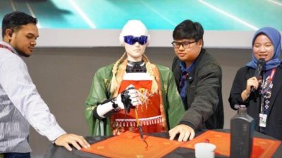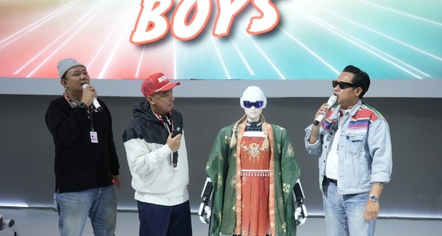 Robot humanoid AiMOGA “MOI” memukau pengunjung lewat demonstrasi kaligrafi, tarian, serta interaksi interaktif bersama GRIND Boys, Gofar Hilman, Rico Lubis, dan Wancoy (Mahesa Yuwanda) dalam sesi talkshow.