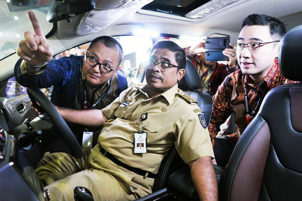 Saat pembukaan GIIAS 2018 di Makassar baru-baru ini, Plt. Gubernur Sulawesi Selatan, Soni Sumarsono, mengunjungi booth DFSK didampingi oleh Ketua DPRD Sulawesi Selatan HR Roem.