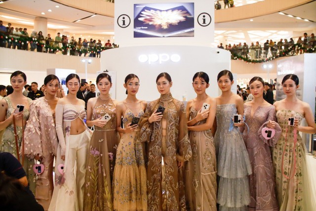 Deskripsi : OPPO juga menghadirkan Special Trunk Show hasil kolaborasi bersama HIAN TJEN, desainer ternama Indonesia yang dikenal dengan karyanya yang memiliki detail rumit yang indah dan elegan. Kolaborasi memadukan dengan sempurna teknologi canggih OPPO Find N3 Flip dengan fashion high-end rancangan HIAN TJEN.