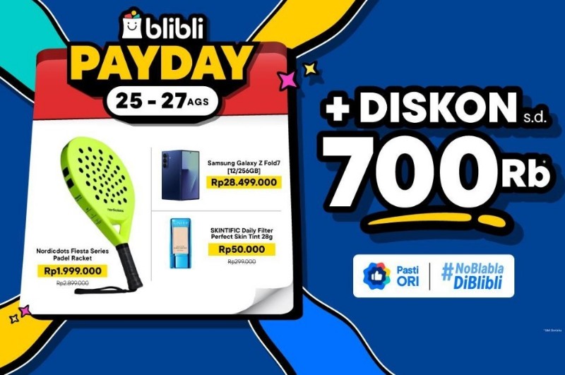 review1st.com – Nikmati promo spesial Blibli Payday 25–27 Agustus 2025! Belanja gadget, skincare, hingga raket padel dengan diskon besar, gratis ongkir, dan cicilan 0%. Self-reward makin hemat di tanggal gajian!