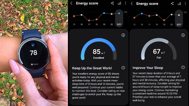 Fitur Energy Score pada Galaxy Watch7 memberikan pemahaman mendalam tentang kondisi tubuh pengguna berdasarkan kualitas tidur dan aktivitas fisik harian.