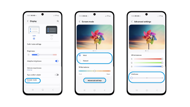 Pengguna juga bisa menyesuaikan pengaturan warna layar sesuai preferensi. Samsung menyediakan pilihan warna Natural atau Vivid, yang dapat disesuaikan lebih lanjut untuk white balance dan tingkat vividness, menjadikan pengalaman visual lebih personal.