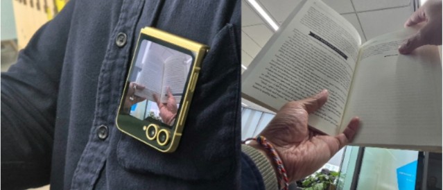 (Kiri) Contoh penempatan angle unik di kantong kemeja untuk membuat hasil foto POV yang unik. (Kanan) Hasil foto POV yang berhasil dijepret menggunakan Galaxy Z Flip6