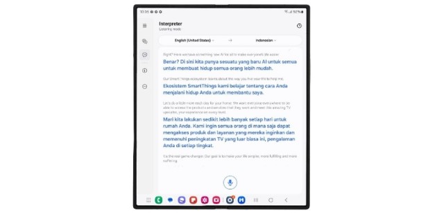 Fitur Listening Mode memungkinkan pengguna untuk menerjemahkan percakapan secara real-time tanpa memerlukan koneksi internet. Dikembangkan oleh tim Samsung R&D Institute Indonesia (SRIN), fitur ini memanfaatkan AI knowledge model yang dirancang untuk memahami konteks pembicaraan dengan lebih baik.