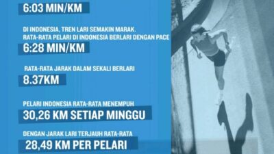 Selain kuantitas, kualitas lari juga meningkat. Rata-rata pelari Indonesia memiliki pace 06:28 menit/km dengan jarak tempuh sekitar 8,37 km per sesi.