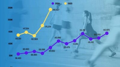 Garmin mencatat lonjakan signifikan pada aktivitas lari sepanjang tahun 2024. Berdasarkan data Garmin Connect, tercatat 56.463 aktivitas lari pada Januari 2024 dan melonjak menjadi 142.975 pada akhir tahun.