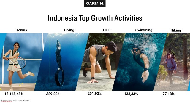 Selain itu, aktivitas seperti menyelam, HIIT, renang, dan mendaki juga mengalami pertumbuhan tinggi. Aktivitas menyelam meningkat hingga 329,22%, sementara HIIT mencatatkan kenaikan 201,92%. Renang dan mendaki juga menjadi pilihan populer bagi masyarakat Indonesia yang semakin peduli terhadap kesehatan fisik dan mental.