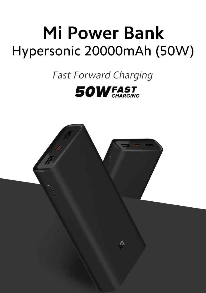 Mi HyperSonic Power Bank memiliki baterai Lithium Polymer dengan kapasitas 20.000mAh. Ini dapat memberikan kecepatan pengisian maksimum 50W. Ada dua port USB Tipe-A dan satu port USB Tipe-C, dan hanya port Tipe-C yang mampu mengisi daya dengan kecepatan 50W. Port USB Tipe-A masing-masing dapat menghasilkan 15W dalam mode koneksi ganda. Secara individual, mereka dapat memberikan pengisian cepat hingga 22,5W. Port USB Type-C juga mendukung Power Deliver (PD) 3.0.