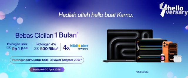• Diskon 4% (maksimal Rp500 ribu) untuk produk seperti Mac, iPad, Apple Watch, dan AirPods