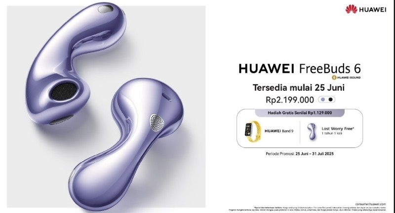 Jangan lewatkan peluncuran perdana HUAWEI FreeBuds 6 pada 25 Juni 2025 di gerai resmi seperti Huawei Authorized Experience Store, Erafone, Urban Republic, dan Blibli Offline Store. Untuk pembelian online, tersedia di Huawei Store, Tokopedia, Shopee, Lazada, TikTok Shop, Eraspace, dan DataScript Mall.ID.