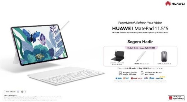 HUAWEI MatePad 11.5 S dapat dipesan melalui Huawei Official Store di Shopee, Tokopedia, Blibli, dan TikTok Shop, serta eraspace.com dan DatascripMall.id untuk pembelian offline. Jangan lewatkan kesempatan untuk memiliki tablet ini dengan promo menarik selama periode pre-order!