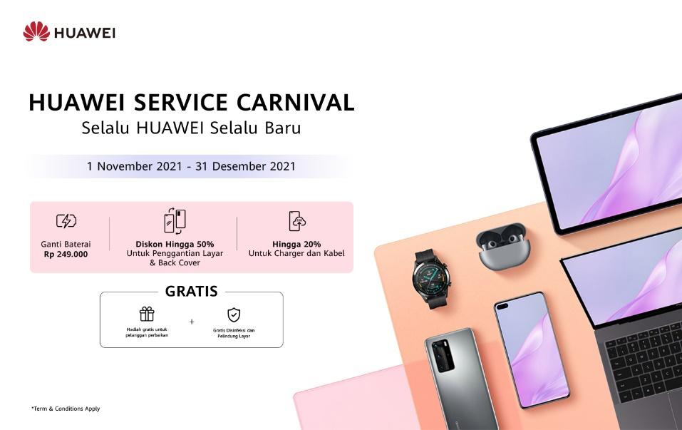 Sebagai bentuk pelayanan prima kepada konsumen, mulai 1 November hingga 31 Desember, Huawei akan menggelar program Huawei Service Carnival.