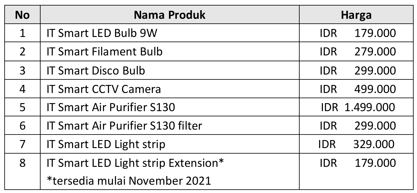 Selama periode launching tersebut, pembelian produk IT Smart Home secara online hanya tersedia secara eksklusif di official store IT: Immersive Tech di marketplace Tokopedia.