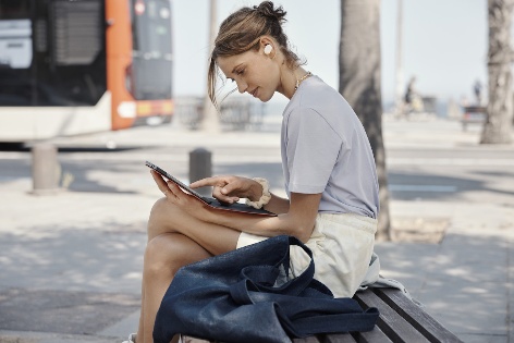 Dengan masa pakai baterai 35 jam yang kompatibel dengan wireless charging Qi (7 jam di earbud + 28 jam di kasing).