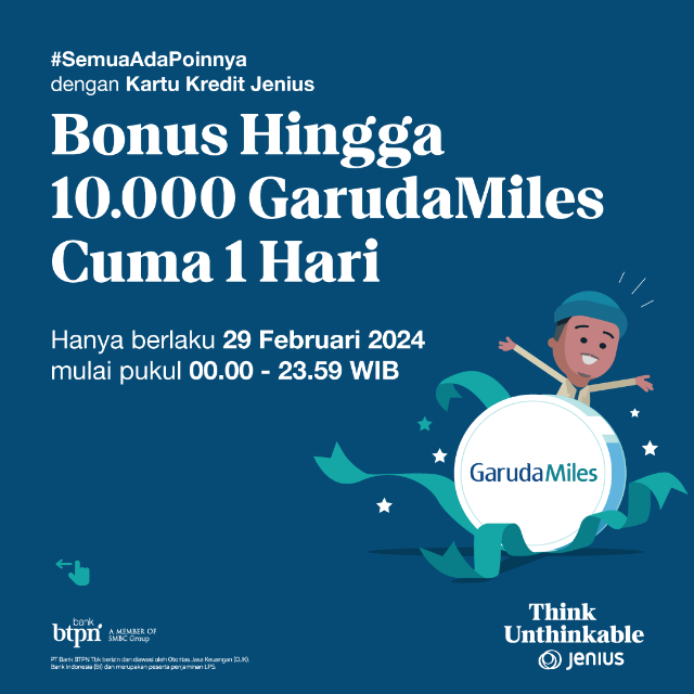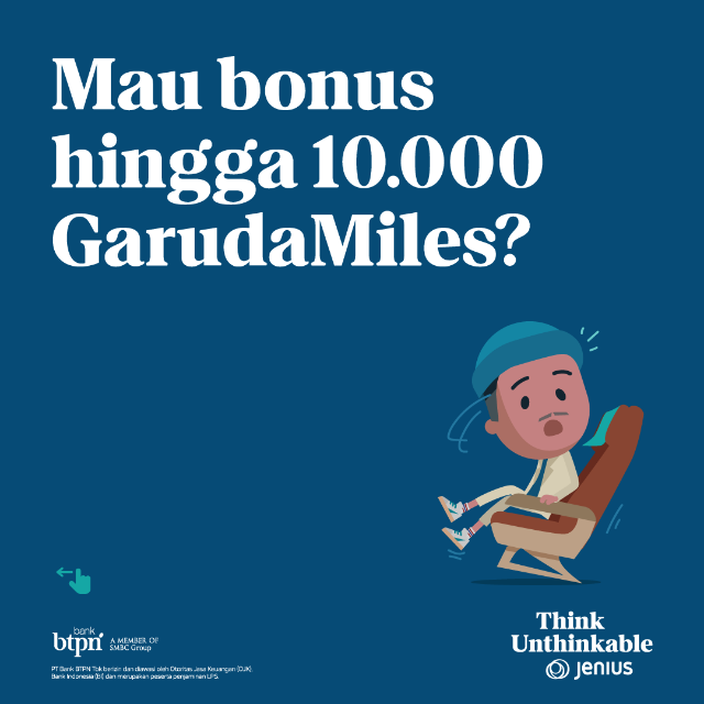 Hanya dalam satu hari, pengguna Jenius memiliki kesempatan untuk mendapatkan bonus hingga 10.000 GarudaMiles.