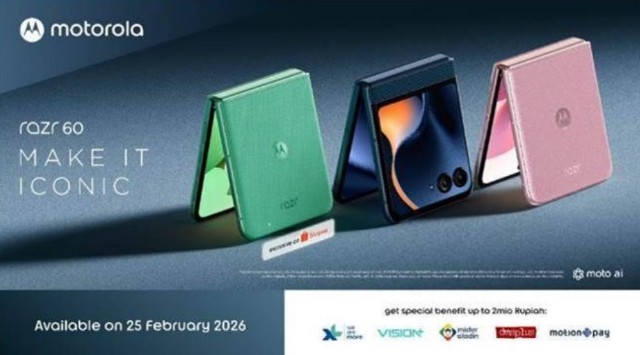 Motorola Razr 60 akan tersedia mulai 25 Februari 2026 di Indonesia melalui Shopee Indonesia dan outlet Digiplus.