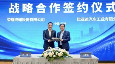 Sementara itu, penandatanganan dokumen dilakukan oleh Fang Fei, President of Products HONOR, dan Yang Dongsheng, Senior Vice President BYD serta President of Automotive New Technology Research Institute.
