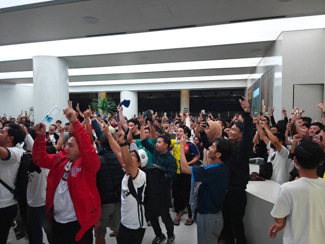 Keterangan Foto #3: Momen perayaan ketika komunitas penggemar sepak bola memenuhi OPPO Experience Store, Discovery Mall Bali, dan OPPO Gallery, Gandaria City, Jakarta, dengan sorak-sorai penuh semangat.