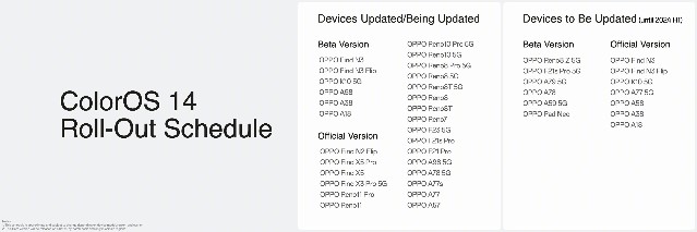 Peluncuran global ColorOS 14 dimulai pada perangkat OPPO pada kuartal terakhir tahun 2023 dan lebih dari 20 perangkat telah ditingkatkan. Di Indonesia, OPPO Reno11 Series yang diluncurkan secara resmi minggu lalu menjadi perangkat untuk debut ColorOS 14.