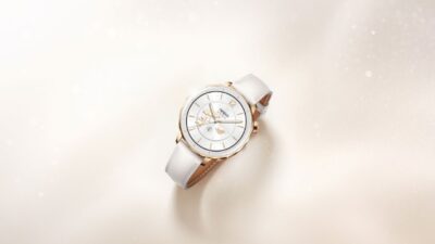 Dengan casing Glimmer Gold 18 karat dan layar 1,32 inci, jam ini cocok untuk pengguna aktif yang ingin tampil stylish.