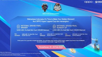 review1st.com – OPPO Hyper Legend Cup x MLBB Campus Series 2026 resmi membuka pendaftaran bagi mahasiswa seluruh Indonesia.