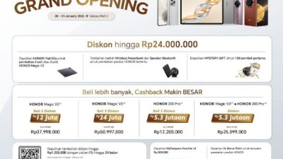 review1st.com – HONOR resmi membuka HONOR Experience Store pertama di Surabaya yang berlokasi di Galaxy Mall 3. Toko ini telah mulai beroperasi dan akan menggelar acara Grand Opening pada 30 Januari 2026.