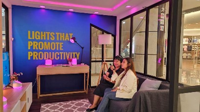 Di sini, pengunjung bisa merasakan langsung kepraktisan pencahayaan pintar untuk berbagai kebutuhan, misalnya untuk meningkatkan produktivitas di ruang kerja, suasana santai di ruang keluarga, hingga suasana energik pada saat berolahraga di rumah.