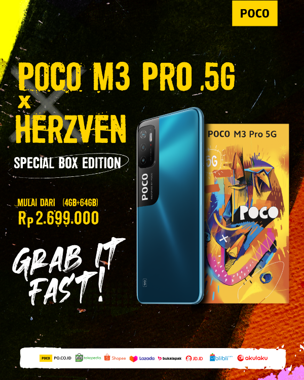 Mulai Harbolnas 12.12 ini, POCO juga menawarkan Special Box POCO x Herzven yang bisa didapatkan melalui toko online resmi Xiaomi Indonesia maupun Xiaomi Store dan Xiaomi Shop di seluruh Indonesia.
