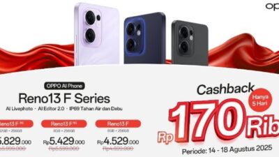 - Reno14 Pro 5G (12GB+512GB): Rp10.829.000 + Cashback Rp170.000