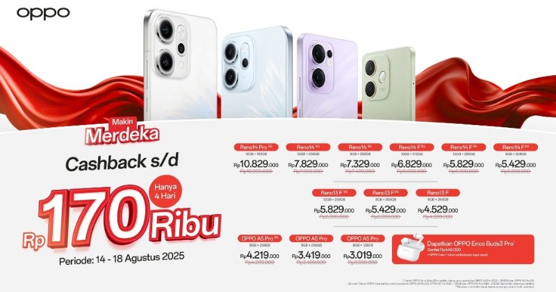 Periode Promo Makin Merdeka OPPO: 14–18 Agustus 2025