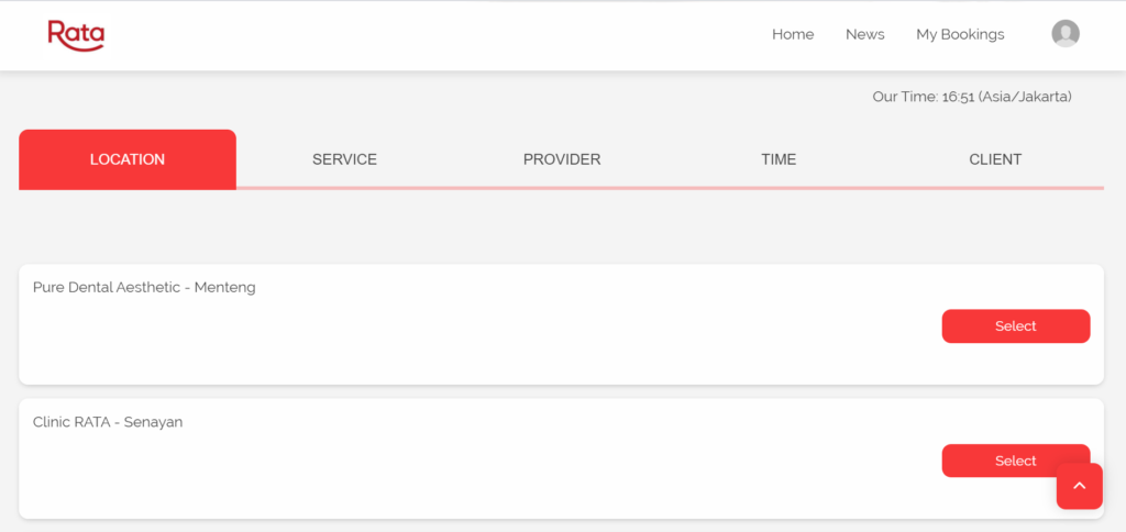 Proses online booking untuk kunjungan ke klinik RATA pun sangat mudah. Konsumen hanya perlu mengunjungi situs online booking, memilih lokasi, waktu kunjungan, dan layanan yang diinginkan, provider, dan waktu kunjungan. Kemudian, konsumen dapat melakukan kunjungan sesuai dengan lokasi dan waktu yang sudah dipilih.