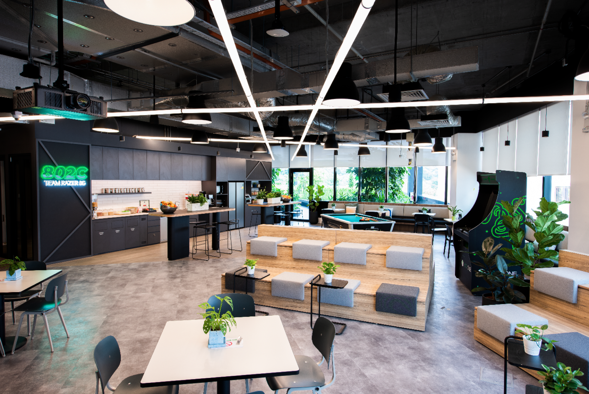 Interiornya dirancang untuk menginspirasi kreativitas dan inovasi, sekaligus memfasilitasi arus informasi yang bebas untuk staf Razer.