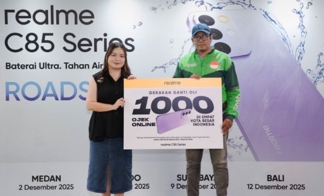 review1st.com — realme Indonesia resmi menutup rangkaian roadshow realme C85 Series yang digelar di empat kota besar Indonesia, yakni Medan, Manado, Surabaya, dan Bali, dengan menghadirkan program Corporate Social Responsibility (CSR) bertajuk “Gerakan Ganti Oli 1.000 Ojek Online.”