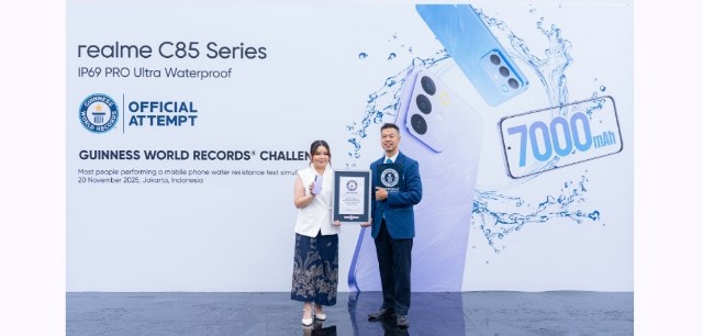 Rekor tersebut dipecahkan dalam acara di Cilandak Sports Center, Jakarta, dan menjadi bukti nyata inovasi ketahanan air pada realme C85 Series.