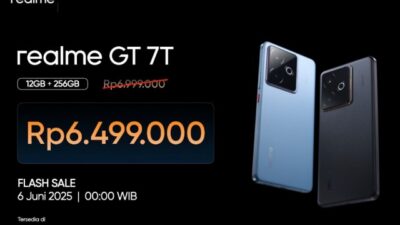 realme GT 7 | 12GB+12GB | Rp8.499.000 | Rp7.999.000 | Flash sale 6 Juni 2025 di Shopee |