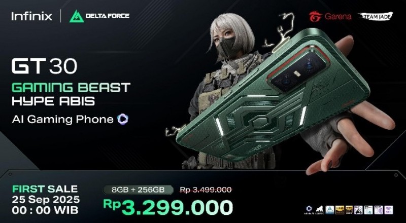 Melalui kerja sama strategis dengan Garena Delta Force, Infinix GT 30 menghadirkan tema gaming eksklusif yang memperkuat posisinya di dunia esports Indonesia.